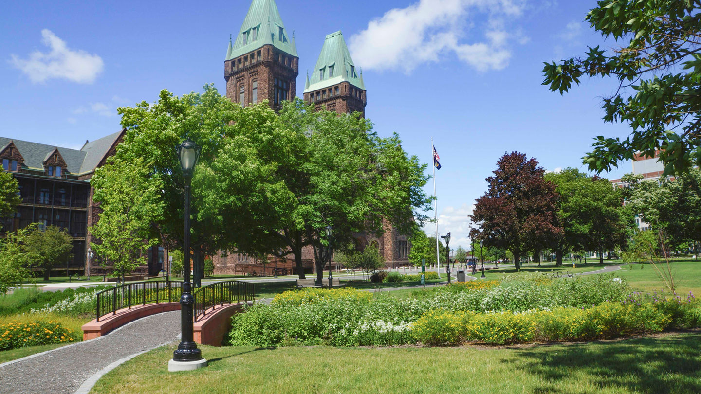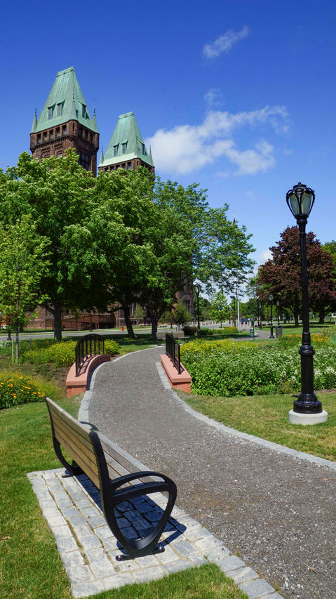 Azar Design Co provided site and civil engineering design for the restoration and reinterpretation of a historic Olmsted landscape at the H.H. Richardson-designed State Mental Hospital, a National Register of Historic Places site in Buffalo. This project revitalized the nine-acre South Lawn by removing two large parking lots at Richardson’s south entry and transforming the area into a vibrant, welcoming space for community gathering and recreation. The renewal included planting 125 new trees to complement existing ones, creating open, canopied spaces with scenic views of the Richardson buildings.